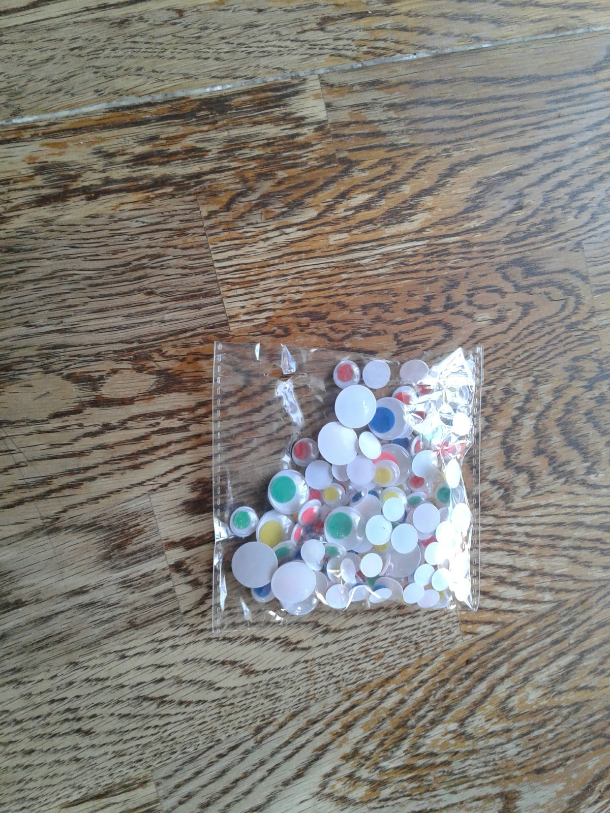 Last was a knock knock joke. This has 2 googly eyes and reads: