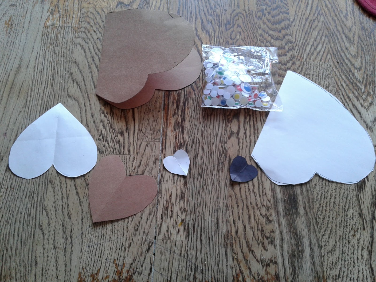 The pictures are the supplies or cut outs, then what they look like after. The knock knock one has paper on it just to cover names! Of coarse they all used glue- white glue is what I used and for the spinning hearts we used a hot glue gun to secure it to the paper!❤