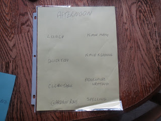 The afternoon is a quick tidy up, 15 min of math, reading, working in our adventure book for writing. This is at least 2-3 sentences a day or a paragraph a week.