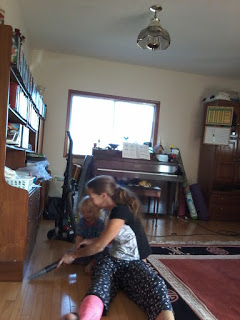 One day I cleaned my counters and deep cleaned behind all the stuff. The next day I vacuumed my floors, as I can not sweep, so I got on my butt and vacuumed haha.