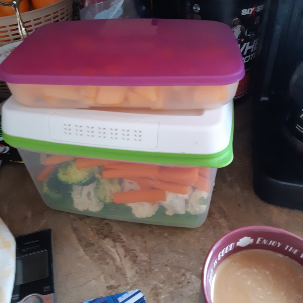 I will usually try to get fruit and veggies washed and sliced put into containers into the fridge for the kids lunches through the week!