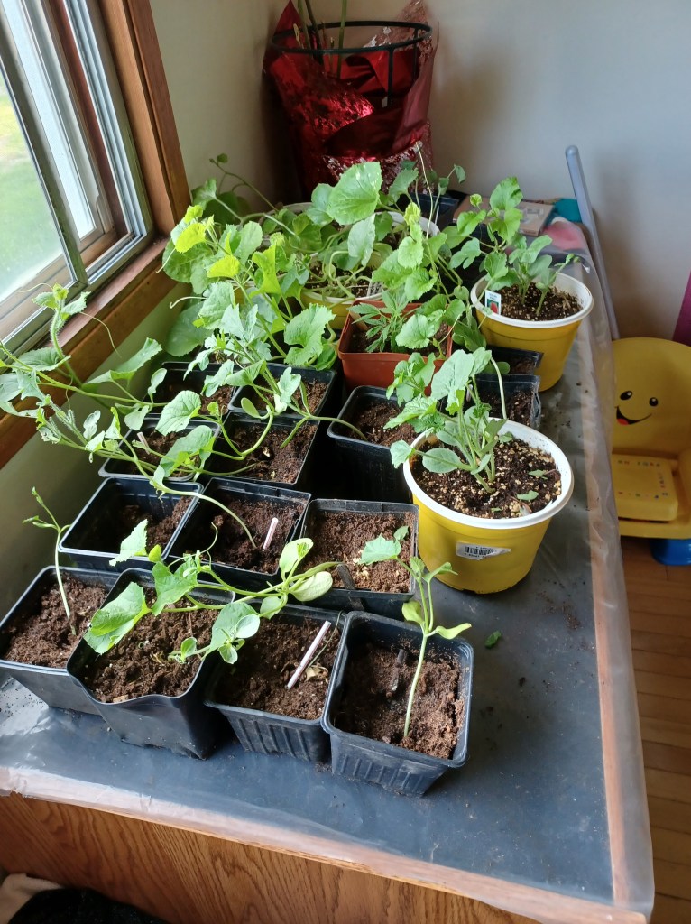 With June all of a sudden half gone and our weather still pretty crazy hitting + 5 the at night it’s still pretty chilly at night for June and, my watermelon, cantaloupe and homeydews! So, my melons haven’t gone out yet it is actually still too cold at night for them and I am not going down to my garden to cover them at night because that is too cold!