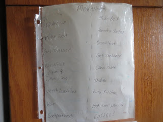 In the morning we start with making our bed, getting dressed, teeth, hair… haha normal stuff.