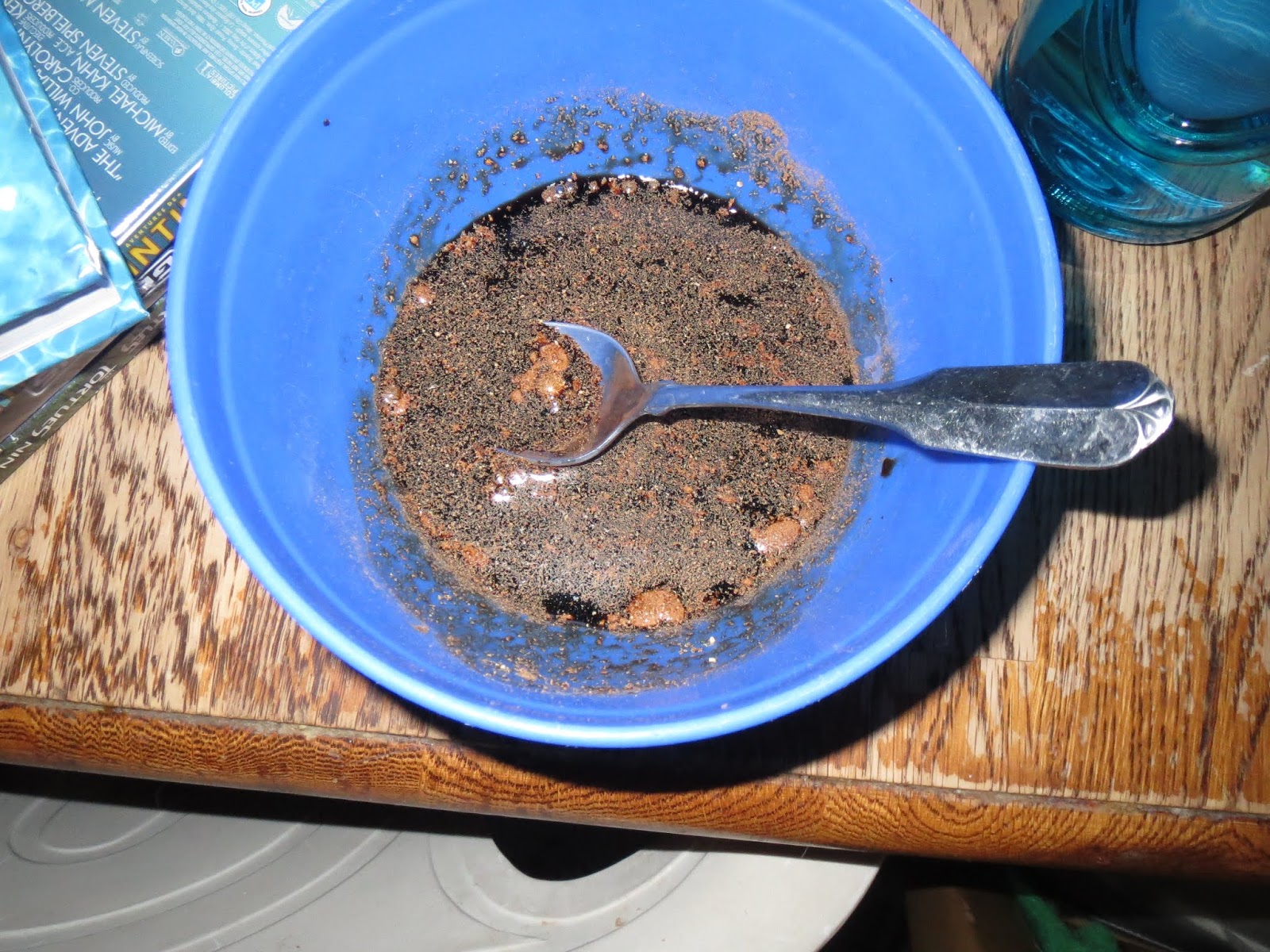 I use a measuring cup usually at least 1/4 cup