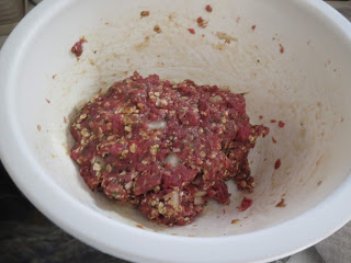 Scoop meat mix and flatten into a patty, place on cookie sheet and repeat!